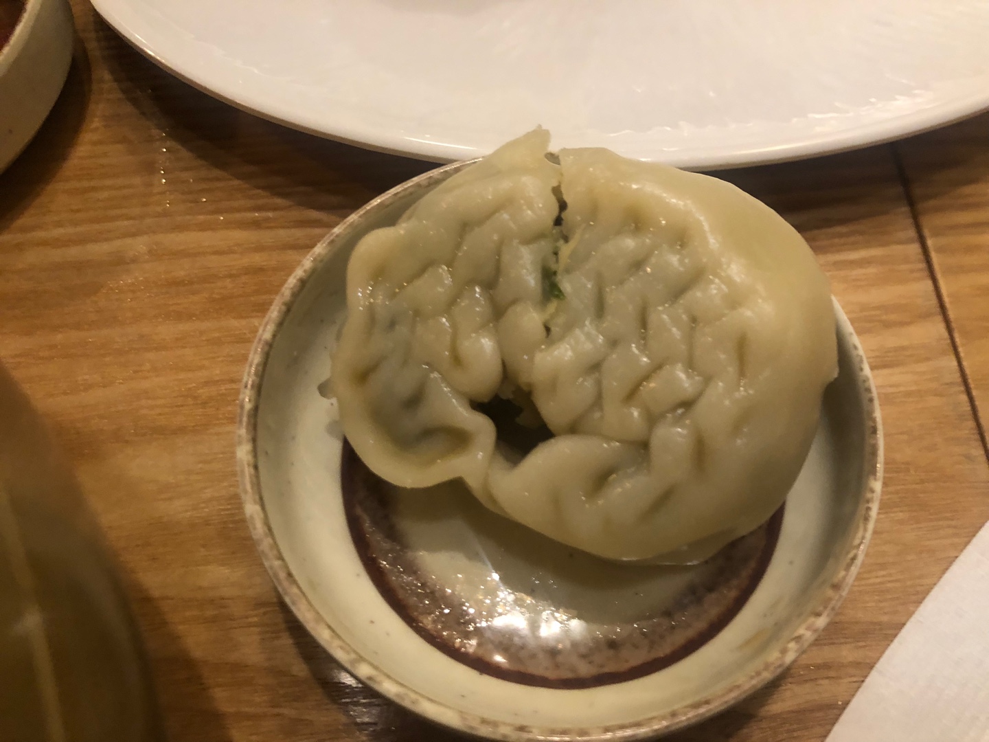 마지막으로 궁금해서 시켜 먹어본 고기 왕만두. 계속 찌고 있어서, 왕만두는 주문하자마자 바로 나온다. 냉면도 빨리 나오는 편이었는데 왕만두는 정말 초고속으로 서빙해 주신다. 냉면 기다리며 살짝 허기를 달래고 싶다면 추천. 우리는 2p 시켜서 하나씩 나눠 먹었다.