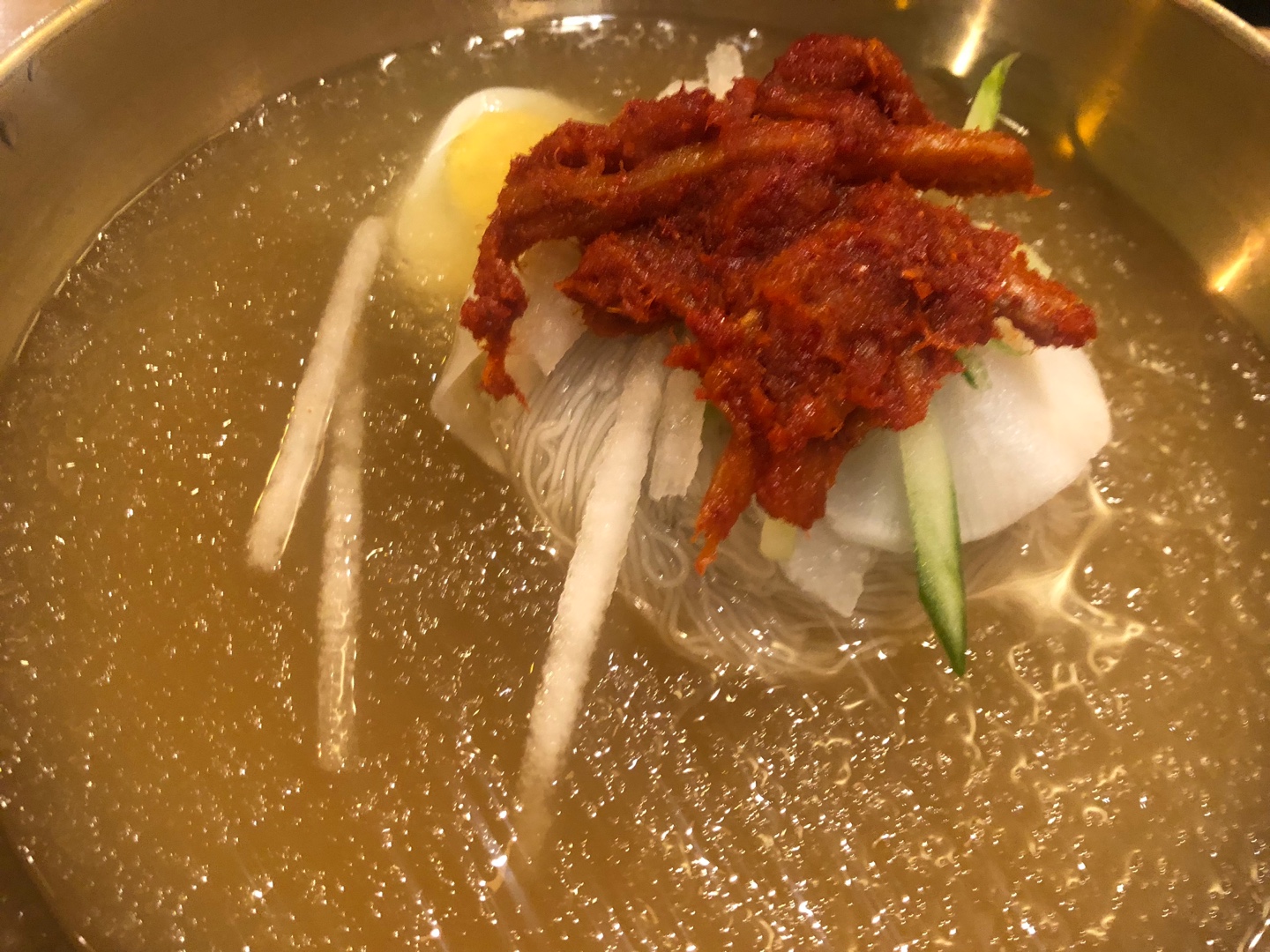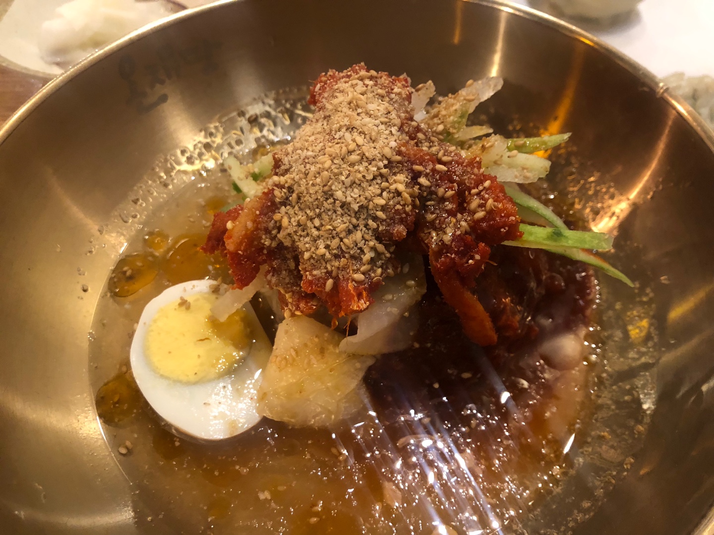 같이 간 친구가 시킨 물냉면. 비빔냉면과 차이는 다데기가 좀 적고 육수가 많은 점. 개인적으로 물냉면을 좋아하지는 않지만, 친구 말로는 요것도 맛있다고.